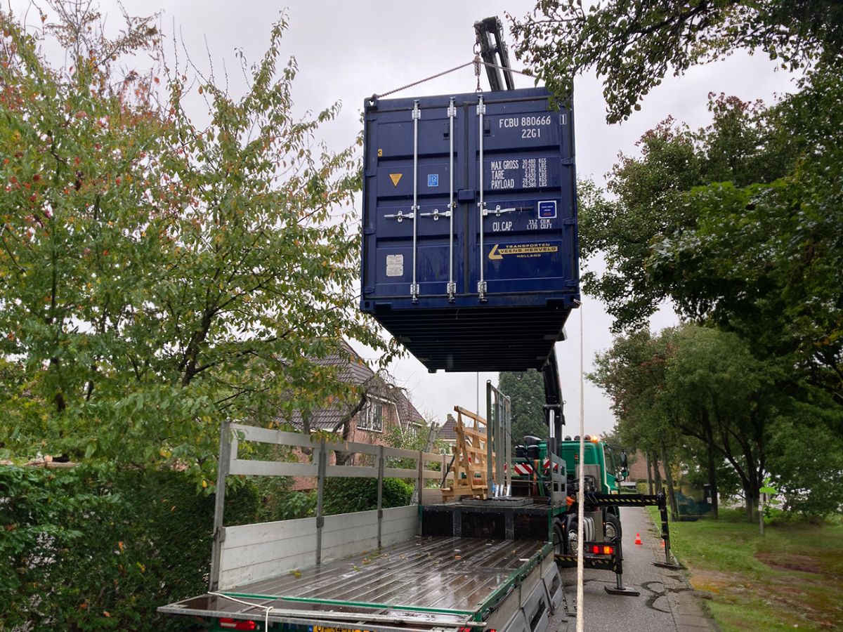 Gaat u binnenkort verhuizen van woning of bedrijf? Dan is een zeecontainer een veilige plek voor de opslag van meubels en andere inboedel. We bezorgen de container voor de verhuizing bij u thuis met een vrachtwagen met daarop een kraanarm. We plaatsen de container naast de vrachtwagen, bijvoorbeeld in uw tuin, op de oprit of op uw bedrijfsterrein. Onze zeecontainers hebben een enorme inhoud van ruim 36 m³.
